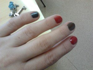 A múlt héten, a nagy pihiben “kivégeztem” újra a Dexter első évadát. Ott láttam annak idején először a különböző színekre festett körmöket (azóta nagy divat lett). Nagy bánatomban múlt vasárnap előszedtem az összes fellelhető lakkomat, kiválasztottam a sötétkéket, vöröset és a barnát, aztán ezt műveltem: